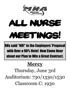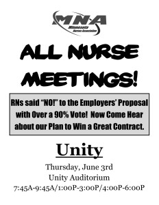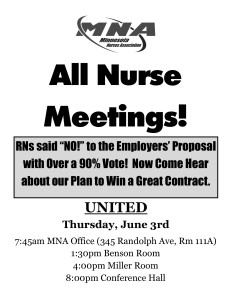 Update by Steve Strand, RN: Today was our second day of bargaining with SMDC. We greeted management with more nurses than they had ever seen before at bargaining!