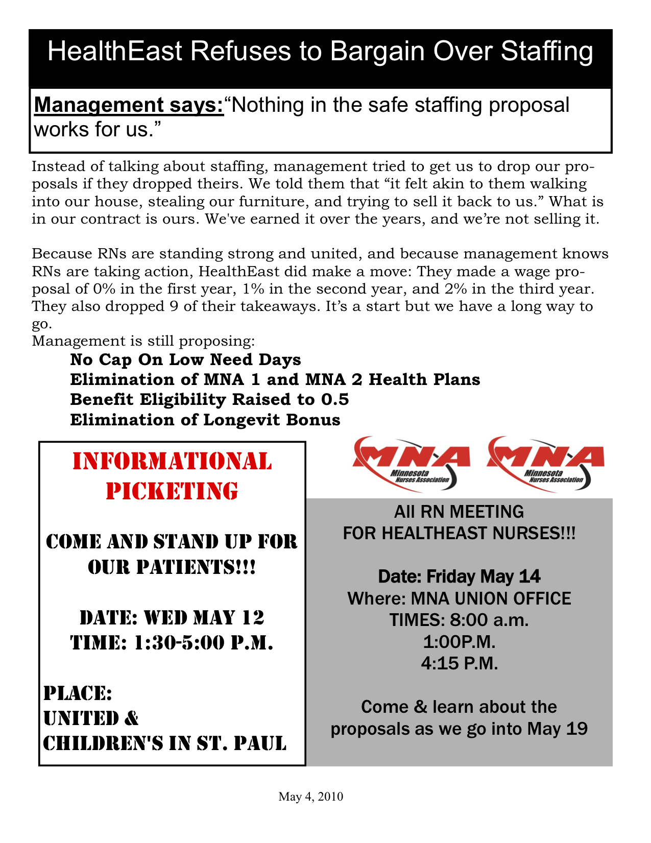 Bargaining, Hospitals, Labor Unions Children’s Bargaining Update (April 29) April 29, 2010 by mnnurses