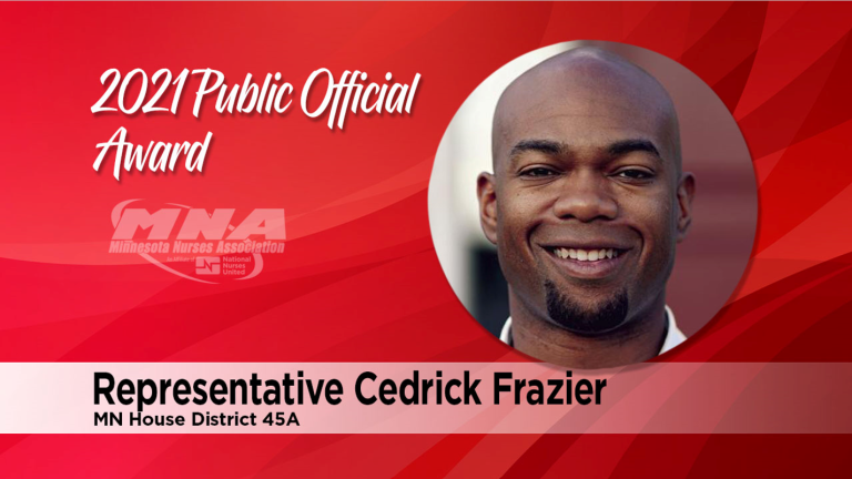 Home, Member Blog, Press Releases Rep. Cedrick Frazier Honored with 2021 Public Official Award by Minnesota Nurses Association November 12, 2021 by mnnurses