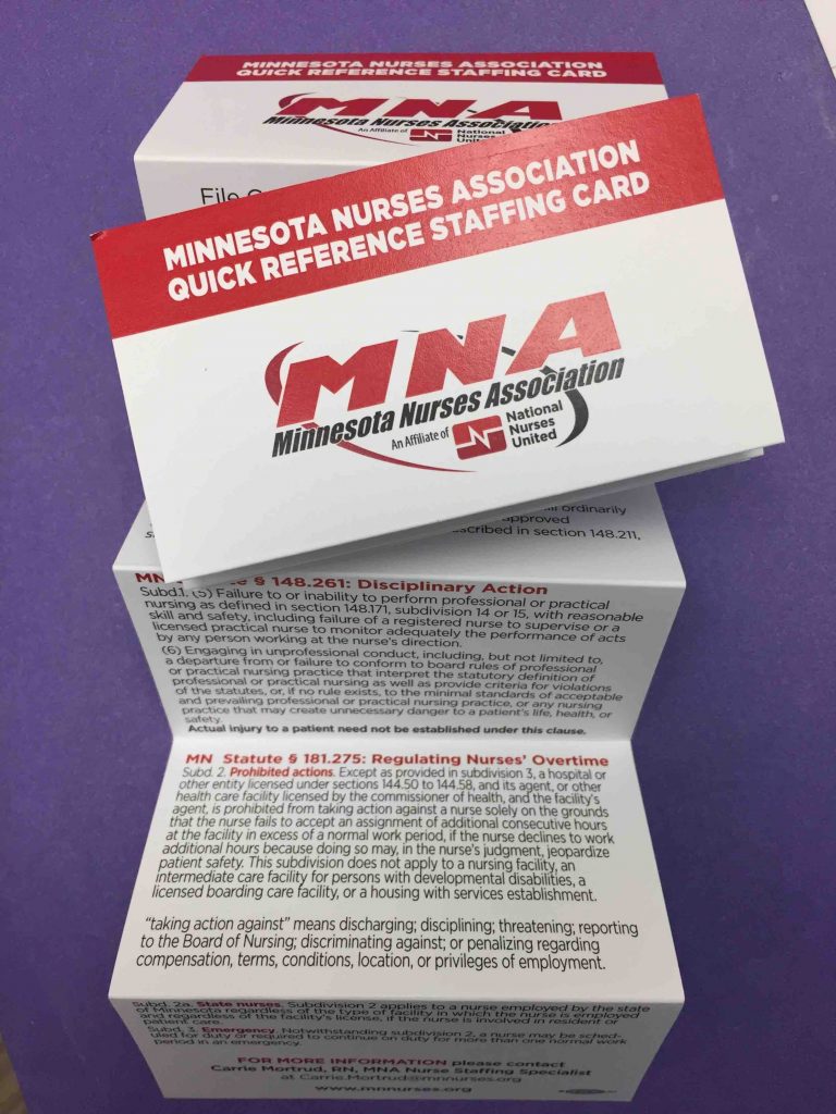 3 Home, Hospitals, Minnesota Nurses Association, Nurse Staffing MNA Quick Reference Card: What Is It And Why Do I Want One? October 9, 2019 by mnnurses