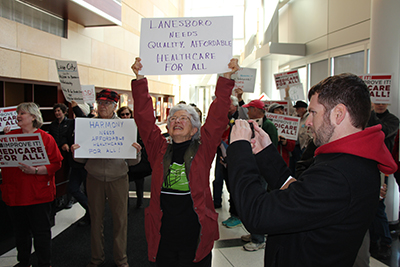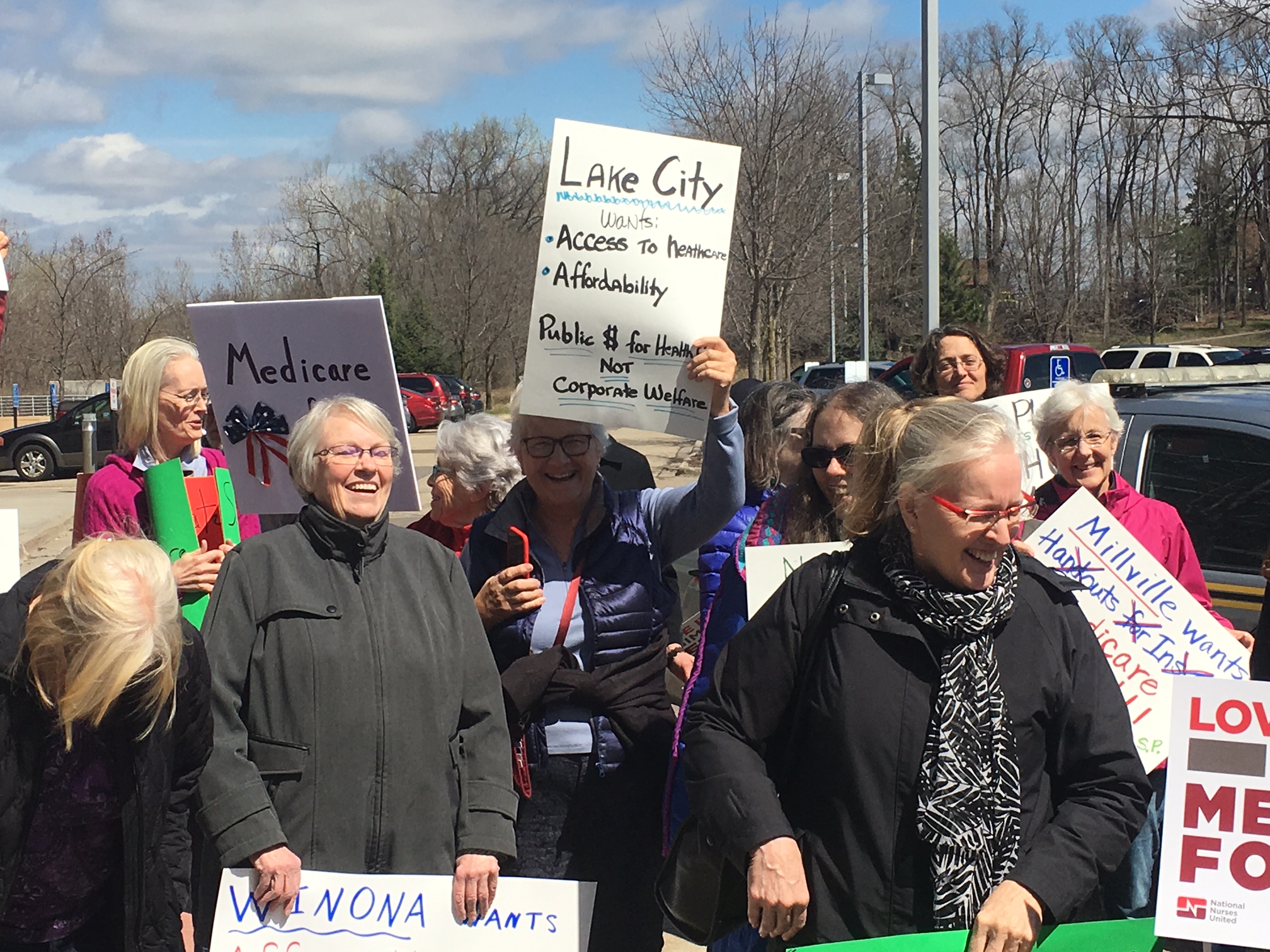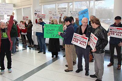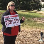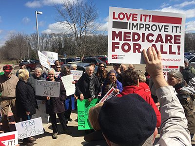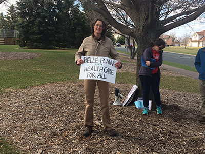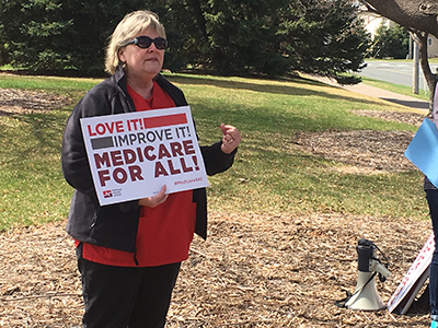 Speakers from the Minnesota Nurses Association, National Nurses United, the Land Stewardship Project, and Physicians for a National Health Program energized dozens of attendees with a call for Medicare for All, which would ensure access to quality, affordable healthcare for all Americans.