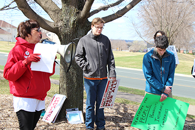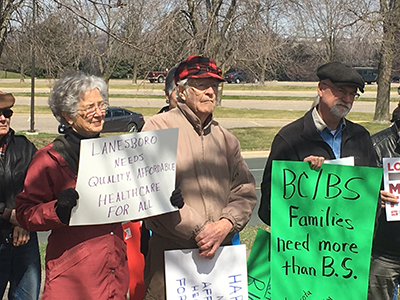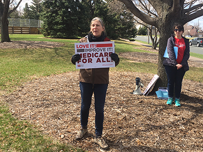 April 11 brought Minnesotans together for a Day of Action for Healthcare for All. A crowd gathered near Blue Cross/Blue Shield’s headquarters in Eagan to rally for a publicly funded healthcare system that covers everyone and costs less: Medicare for All.