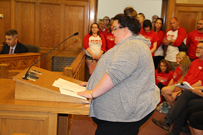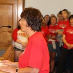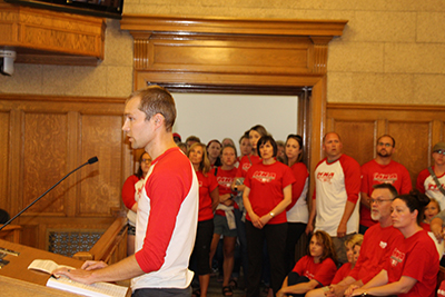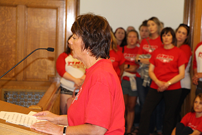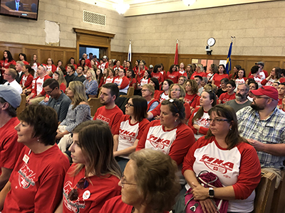 Nearly 200 nurses filled the council chamber and hallways as four MNA members and MNA Executive Director Rose Roach addressed councilors about their concerns about patient care, scheduling the appropriate number of nurses to care for patients, and workplace safety.